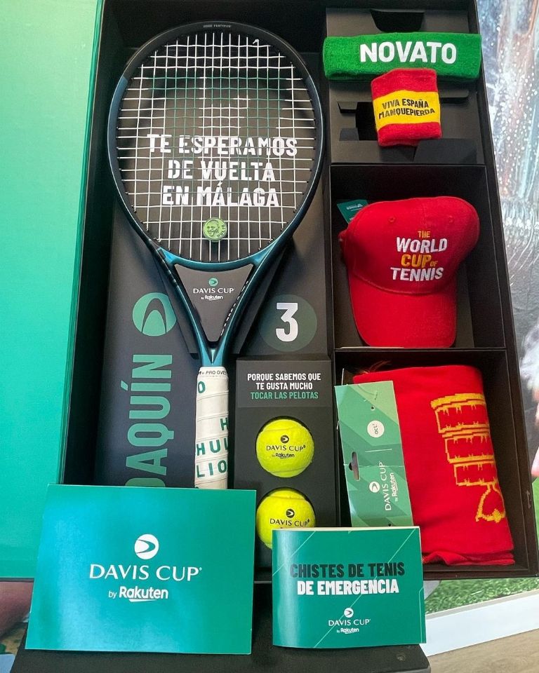 «Mira que hermoso detalle se llevaron mis amigos gerard pincha y el equipo de la Copa Davis. me encanta gracias! Estoy preparado para el Mundial de Tenis que se celebrará en mi querida Málaga del 22 al 27 de noviembre. Hasta pronto, familia», escribió el futbolista en su perfil de Instagram.